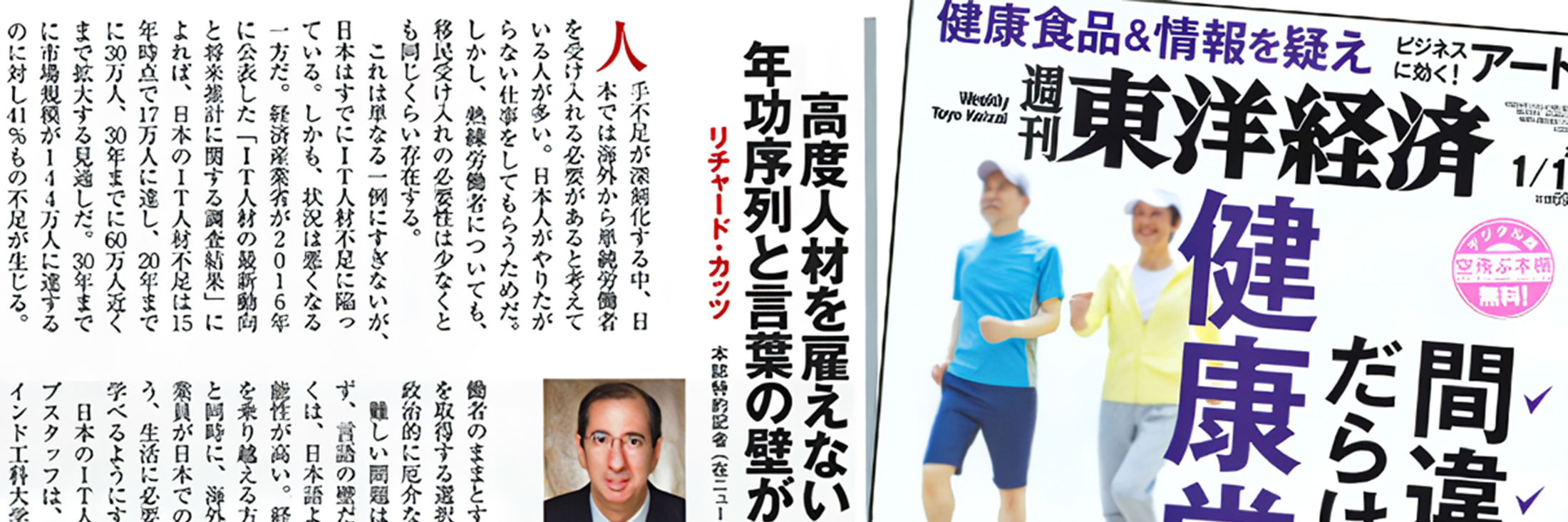 週間東洋経済(2018年1月13日発行)に「PIITs」の取り組みが掲載されました。 高度なIT人材を国外からも確保する必要性を、日本のIT人材不足の現状と共に取り上げています。 PIITsというサービスが日本企業にとって、世界の優秀なIT技術者獲得の一手となるようこれからも尽力してまいります。 詳しくは本紙77ページを是非ご覧ください。